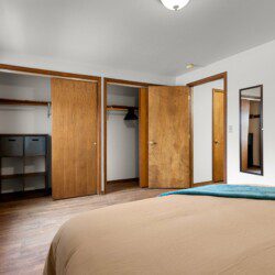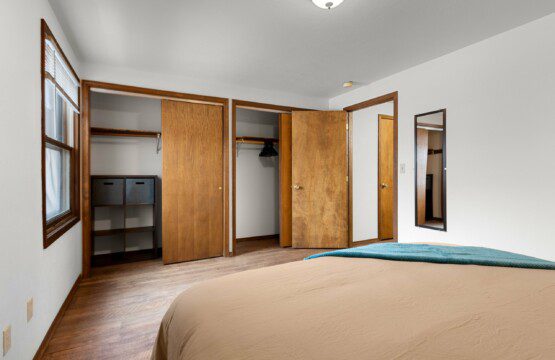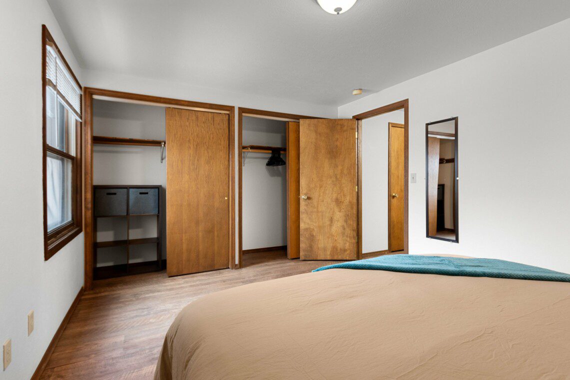 The bedroom is also very spacious with two large closets, king sized bed, soft sheets, a warm duvet, and extra pillows.