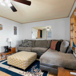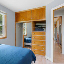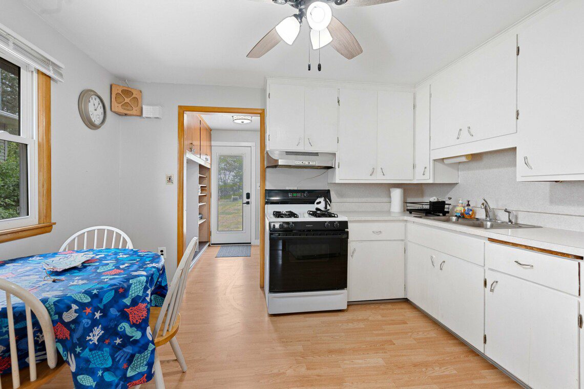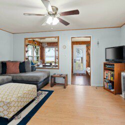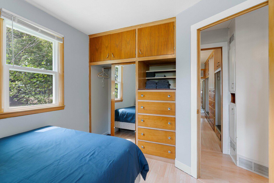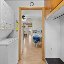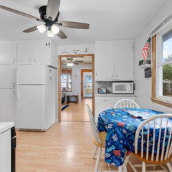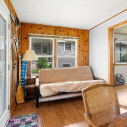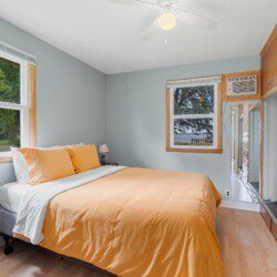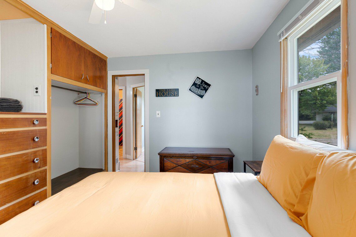 This cozy two-bedroom cottage has everything you need conveniently located on one level with a full kitchen, washer/dryer, dining area, living room, and bathroom. While the garage is off-limits to guests, there is ample parking in the driveway and a front row seat to the lake off the rear of the house.