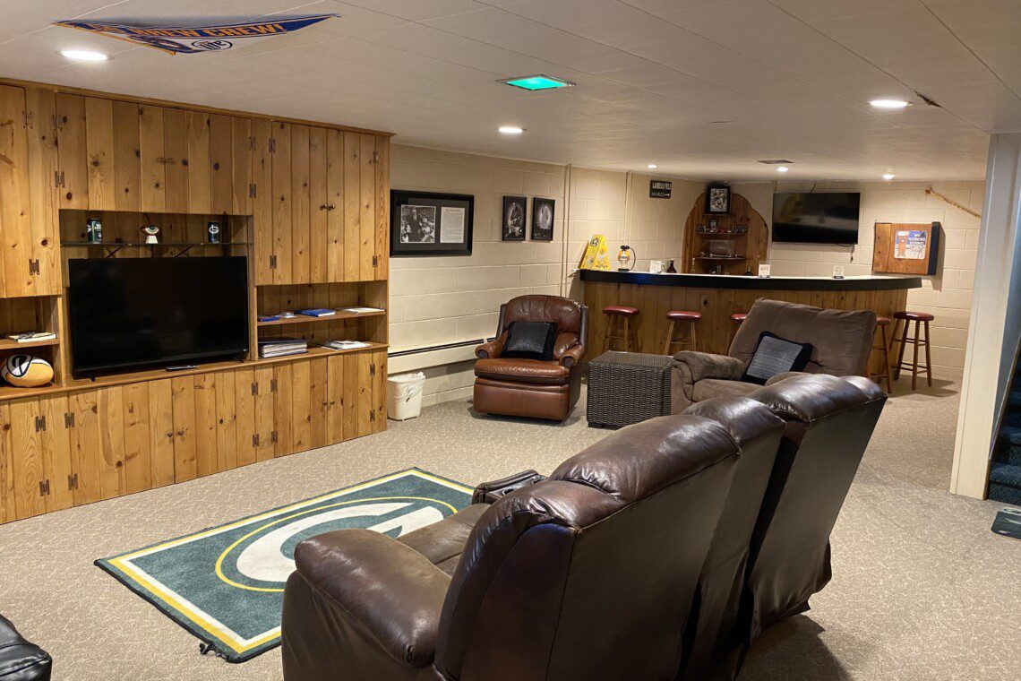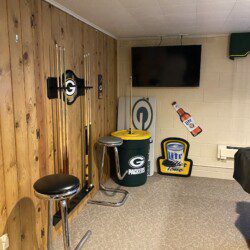 Located just blocks from Lambeau Field and the Resch Center, this beautiful 3 bedroom, 2 bathroom home is the perfect place to gather. Boasting a decked out basement Packer room complete with pool table, built in bar, spacious seating area and multiple flat screen TV’s, this home was made to host world famous Packer Fans for pre-game gatherings! Spacious backyard is equipped with screen porch, lawn chairs, yard games and a gas grill. Look no further for your perfect Green Bay stay!