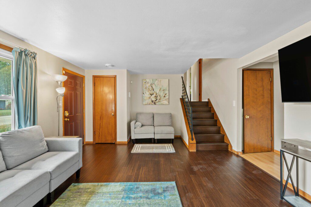 This split level home located only 1 mile from Lambeau Field features 4 bedrooms, 2 bathrooms, and 2 living rooms providing ample space for families and friends to stay together while still having space to themselves.